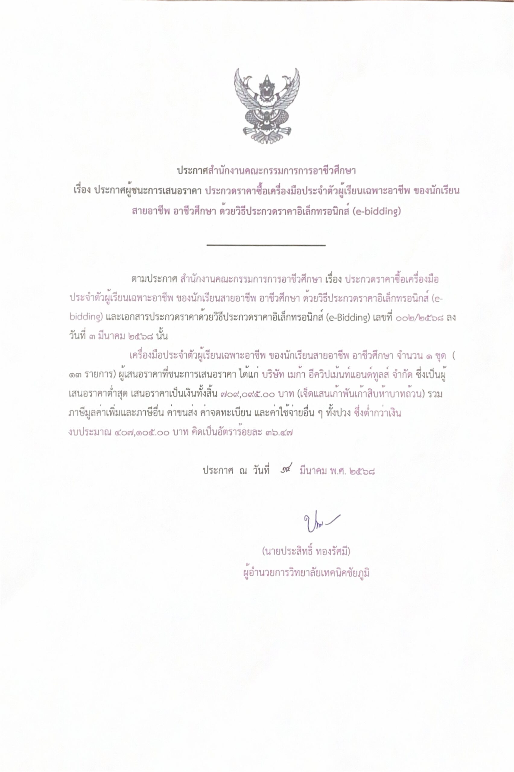 ประกวดราคาซื้อเครื่องมือประจำผู้เรียนเฉพาะอาชีพฯ