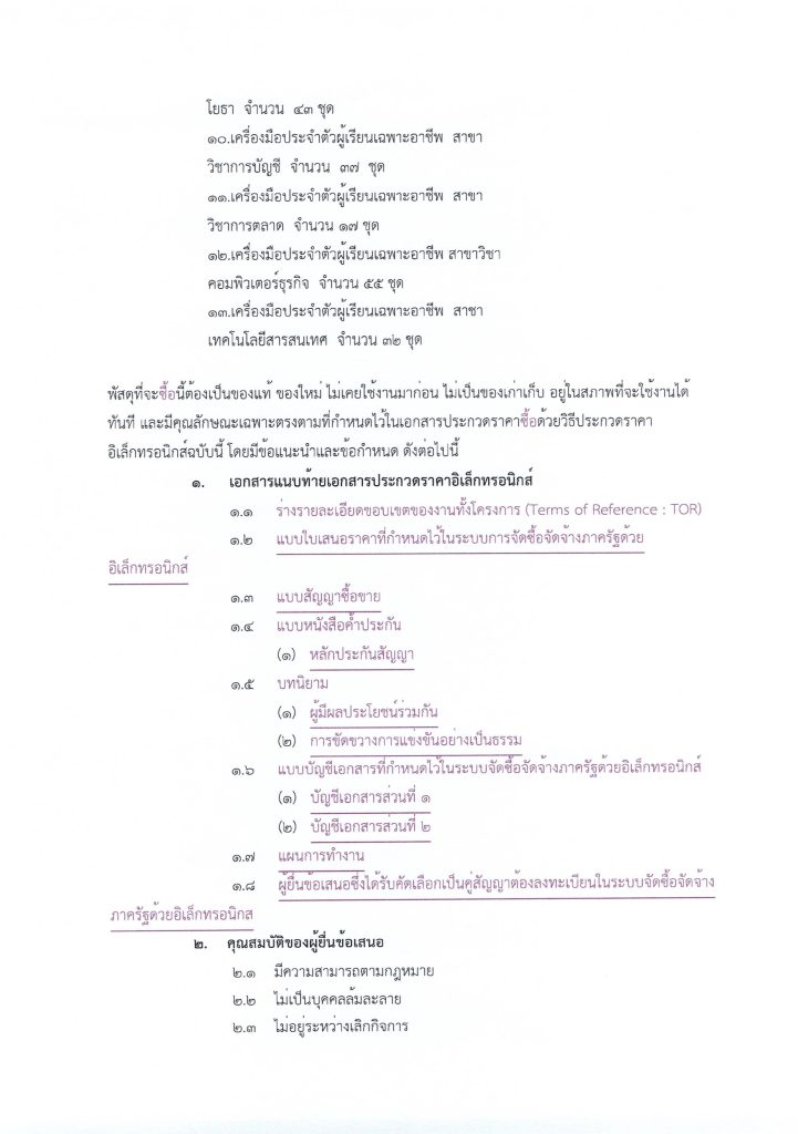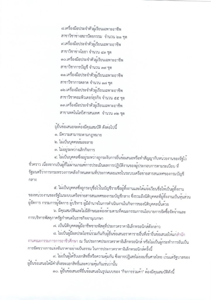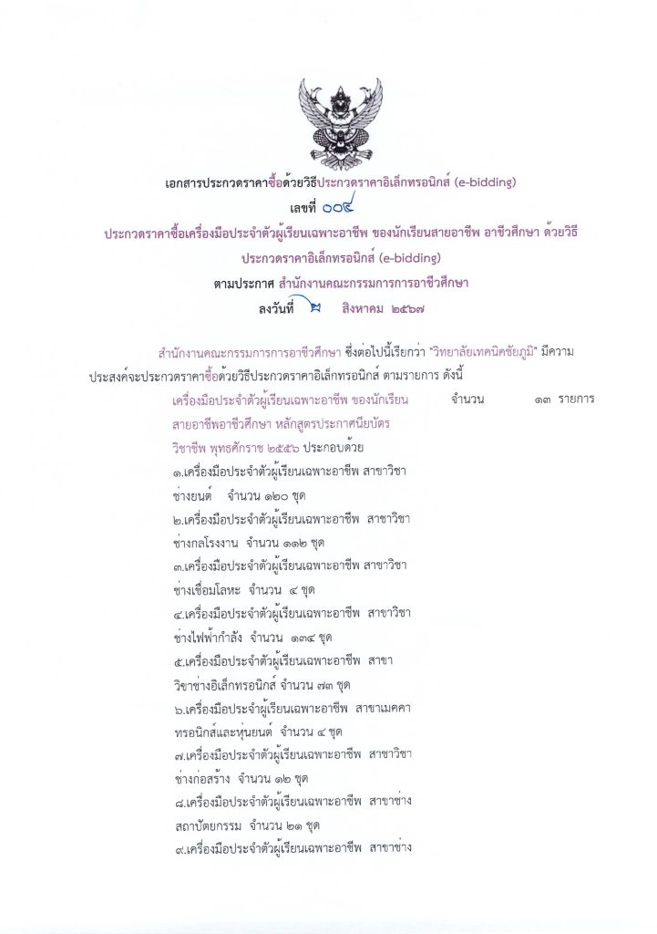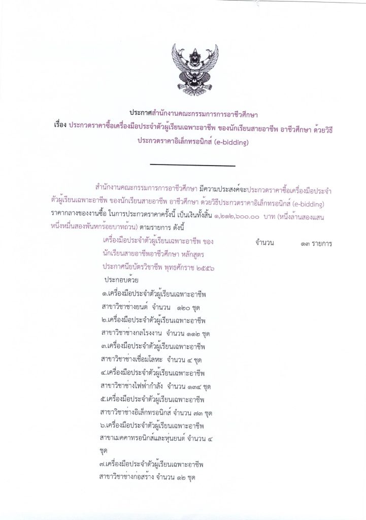 ประกวดราคาซื้อเครื่องมือประจำตัวผู้เรียนเฉพาะอาชีพฯ