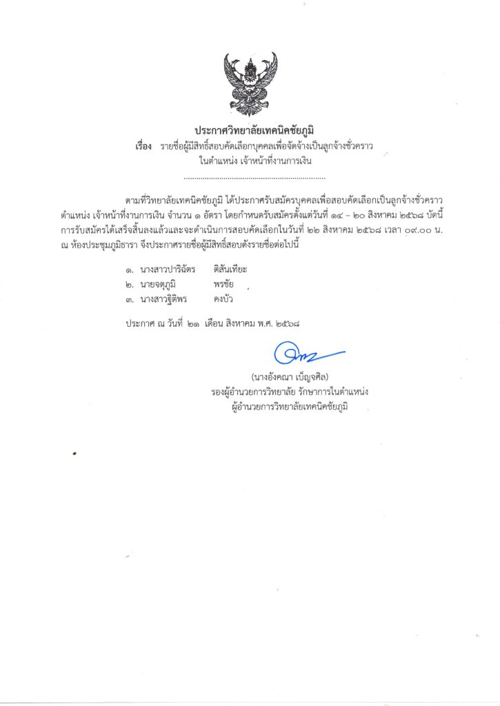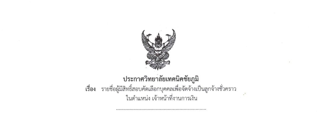 ประกาศรายชื่อผู้มีสิทธิสอบเจ้าหน้าที่งานการเงิน