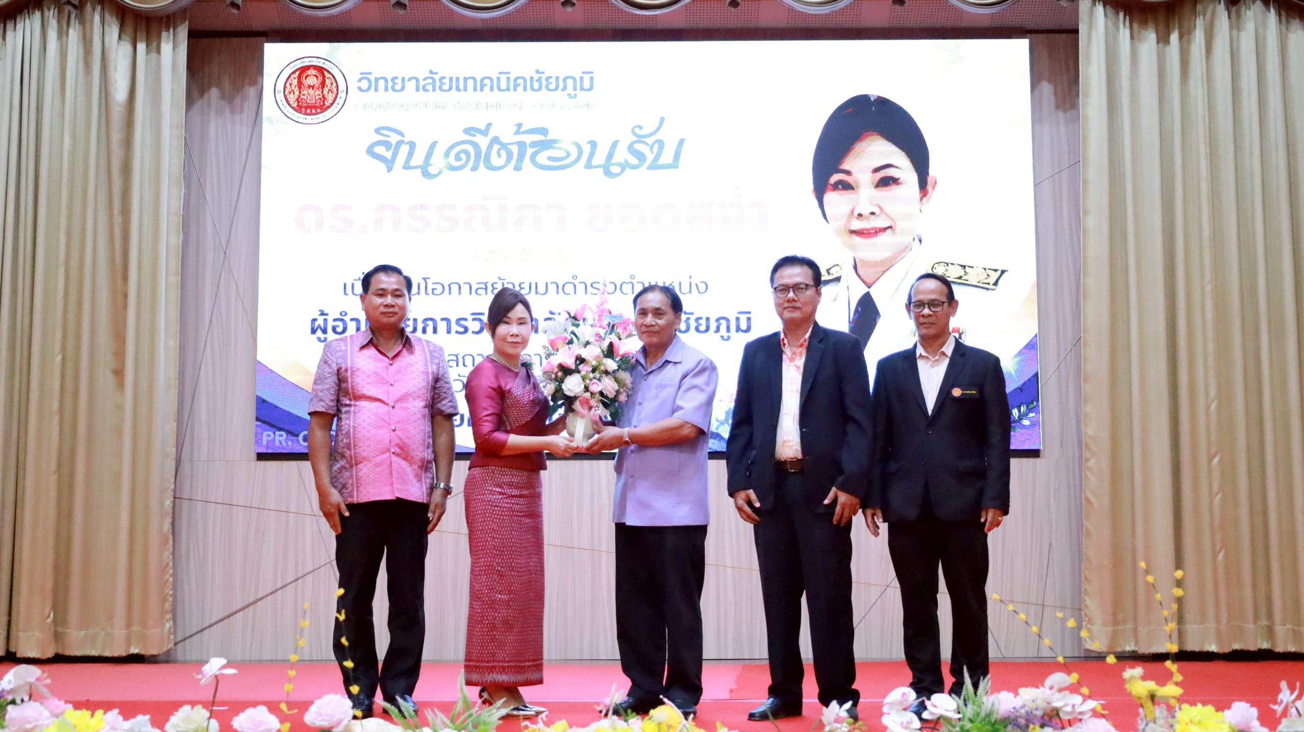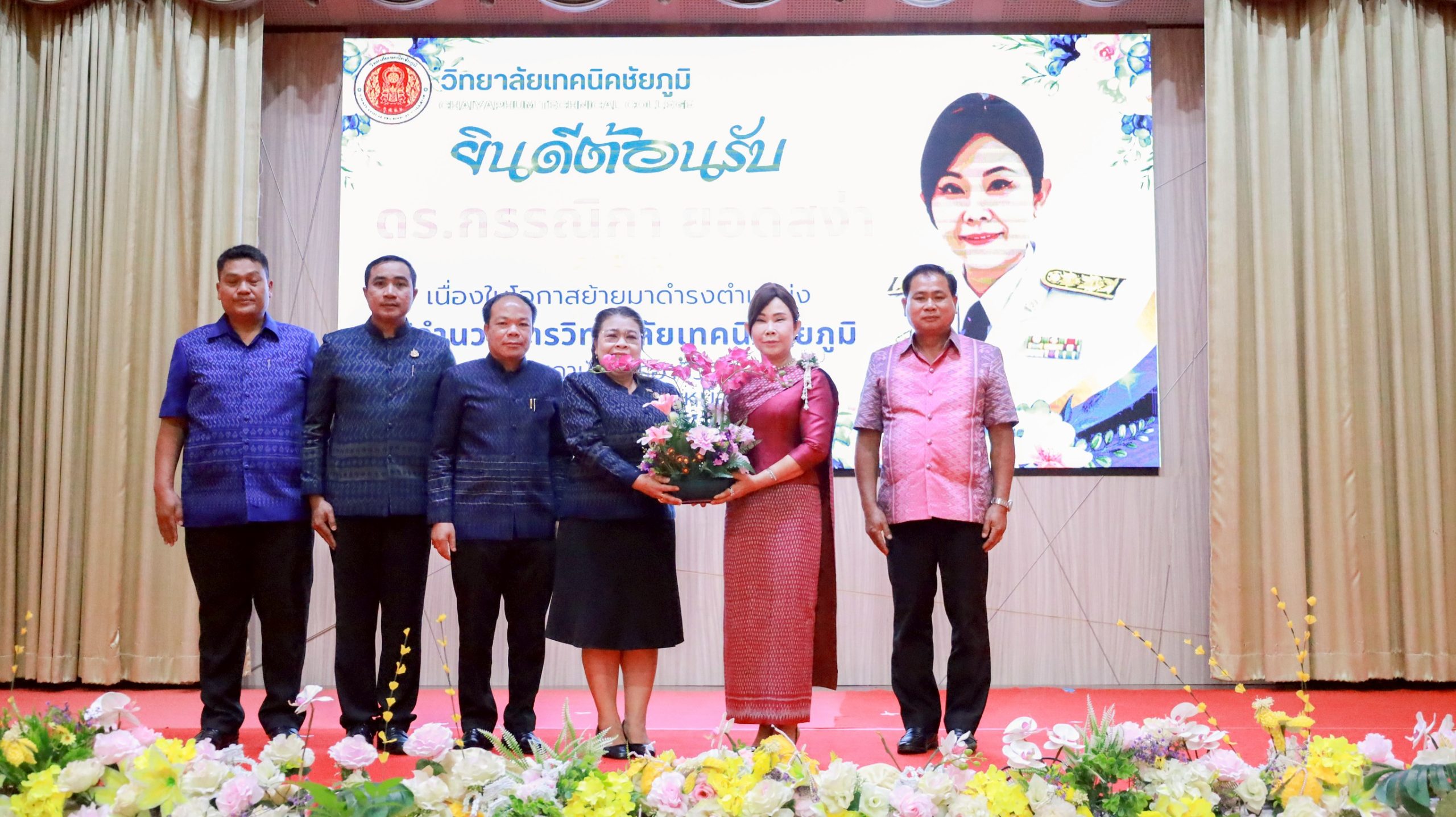 วันพฤหัสบดีที่ 9 ตุลาคม 2568 คณะผู้บริหาร ครูและบุคลากรทางการศึกษา วิทยาลัยเทคนิคชัยภูมิ ร่วมต้อนรับและแสดงความยินดีกับ ดร. กรรณิกา ยอดสง่า เนื่องในโอกาสย้ายมาดำรงตำแหน่ง ผู้อำนวยการวิทยาลัยเทคนิคชัยภูมิ สังกัดสถาบันการอาชีวศึกษา ภาคตะวันออกเฉียงเหนือ 5 ณ หอประชุมทิวสน วิทยาลัยเทคนิคชัยภูมิ