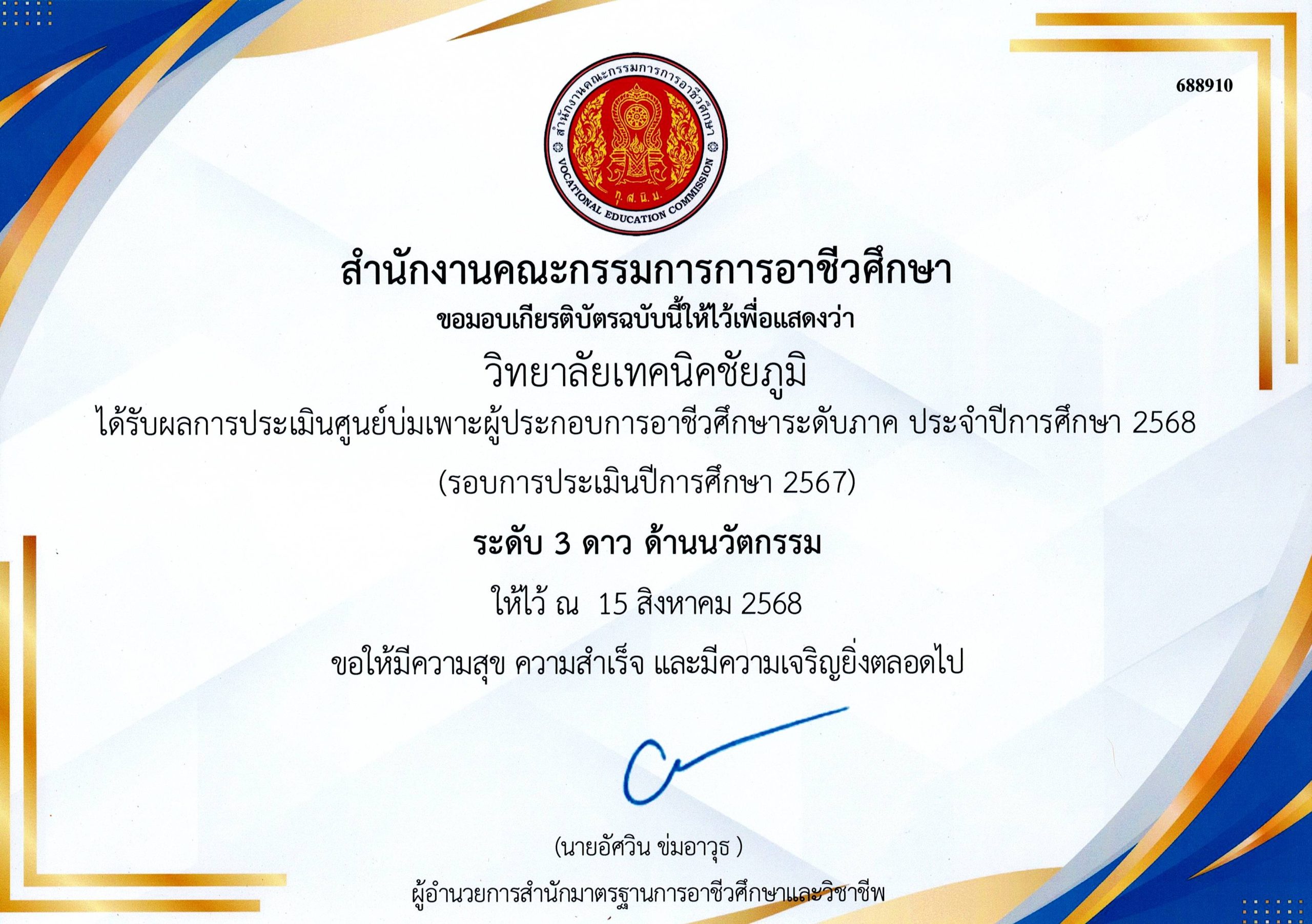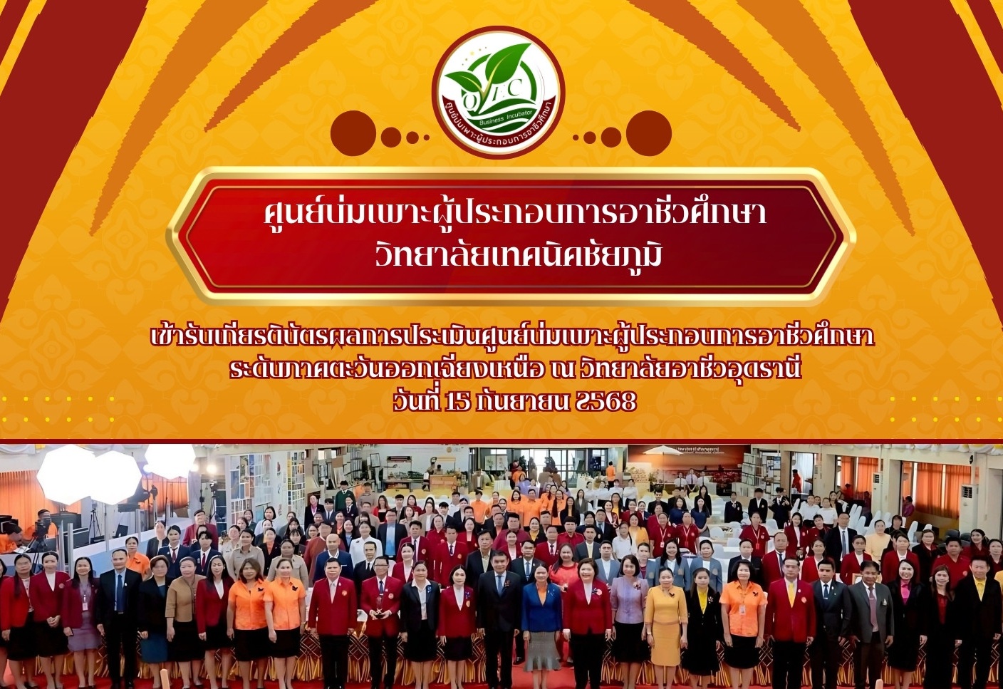 ศูนย์บ่มเพาะผู้ประกอบการอาชีวศึกษา เกียรติบัตรการประเมินศูนย์บ่มเพาะผู้ประกอบการอาชีวศึกษา ระดีบ ภาค ตะวันออกเฉียงเหนือ ประจำปีงบประมาณ 2568 (รอบการประเมินปีการศึกษา 2567)