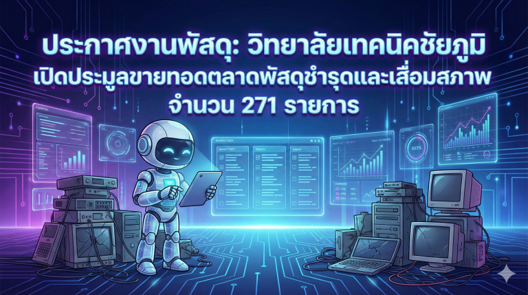 📢 ประกาศงานพัสดุ: วิทยาลัยเทคนิคชัยภูมิ เปิดประมูลขายทอดตลาดพัสดุชำรุดและเสื่อมสภาพ จำนวน 271 รายการ 15 มกราคม 2026